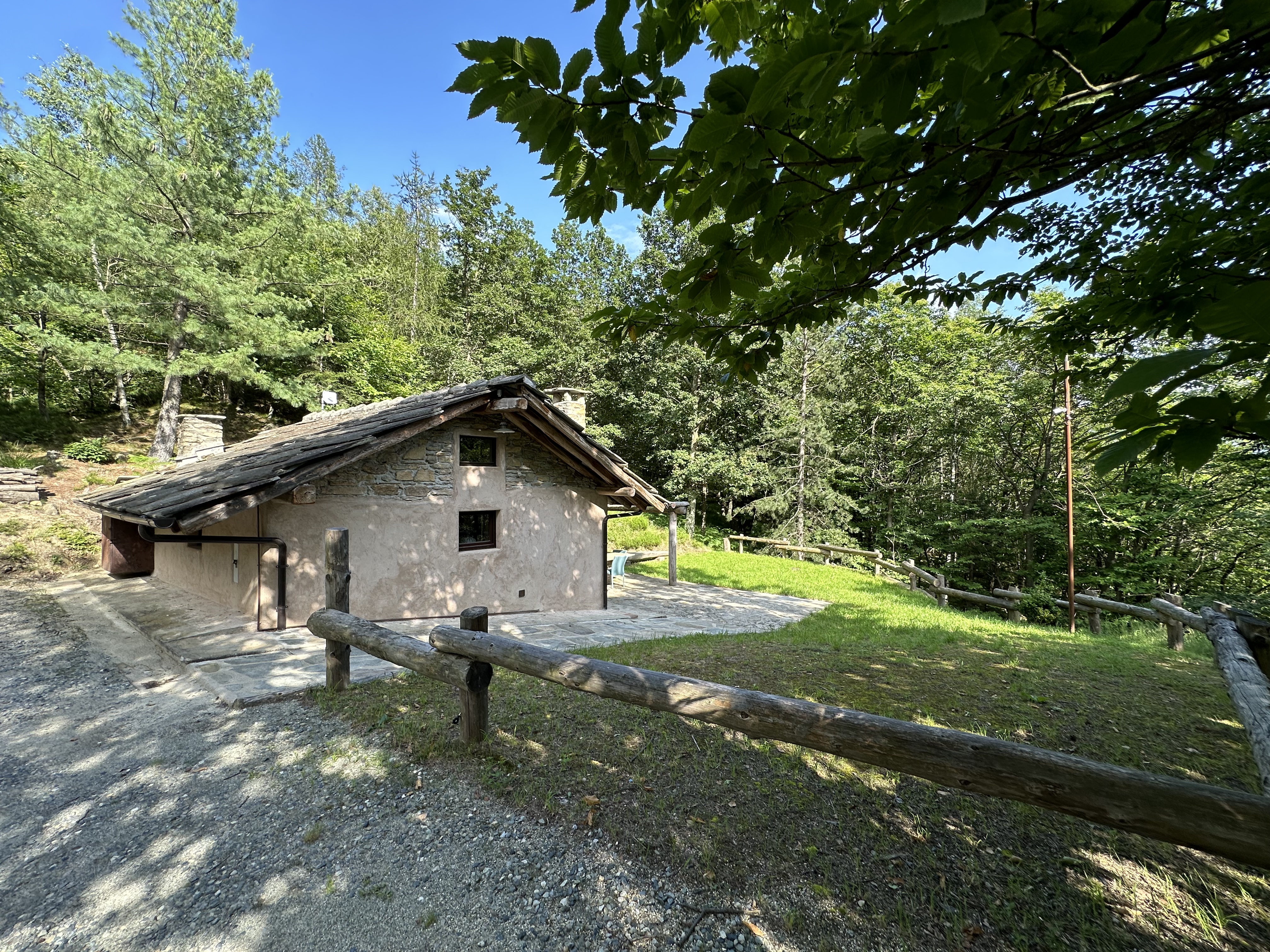 La baita del Giulio è una piccola casetta in mezzo al bosco, piccola, ma con tutti i confort.